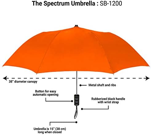 STROMBERGBRAND UMBRELLAS Spectrum Popular Style 16″ Automatic Open Umbrella Light Weight Travel Folding Umbrella for Men and Women, (Orange)